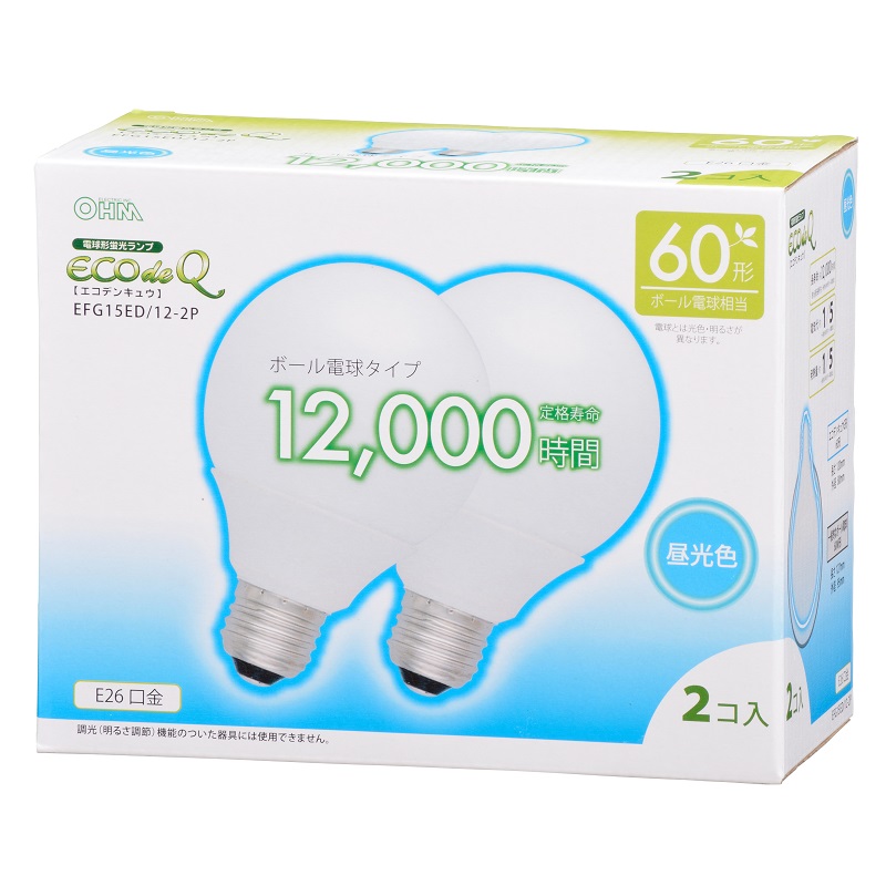 ![電球形蛍光灯 ボール形 E26 60形相当 昼光色 エコデンキュウ 2個入 [品番]06-0264](https://www.ohm-electric.co.jp/wp/wp-content/uploads/2025/11/06026400-360x360.jpg)