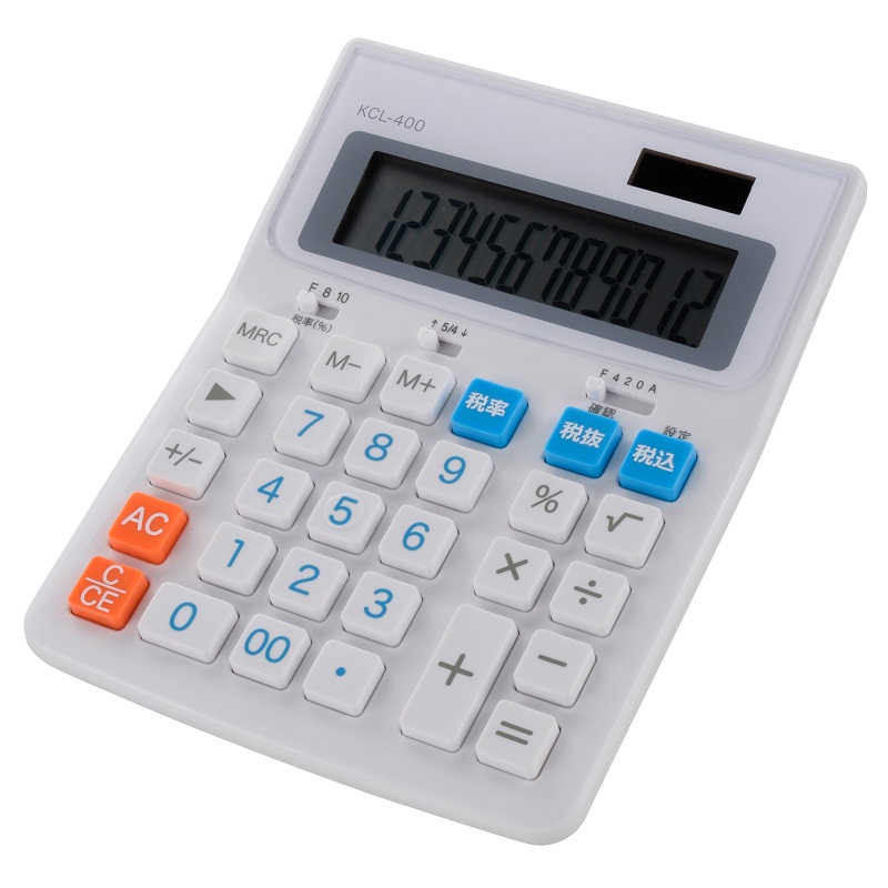 ■ 計算機能:消費税計算、四則(加減乗除)計算、パーセント計算、定数計算、メモリー計算、