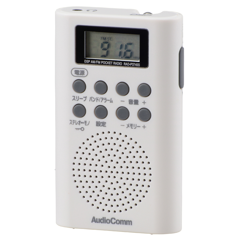 AudioCommワイドFM対応 DSP FMステレオ/AMポケットラジオ ホワイト [品番]07-8661