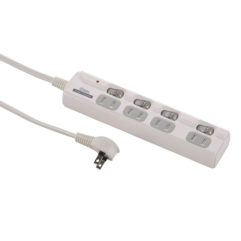 - LED個別スイッチ/雷サージ軽減素子機能付き 節電タップ 5m [品番]00-1958