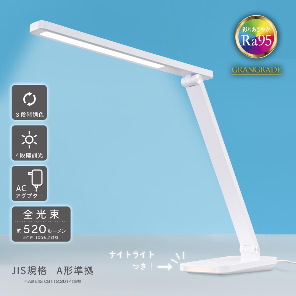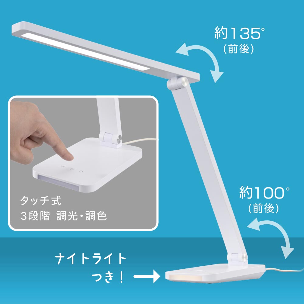 LEDデスクライト 4段階調光 3段階調色 520lm ホワイト [品番]06-1944