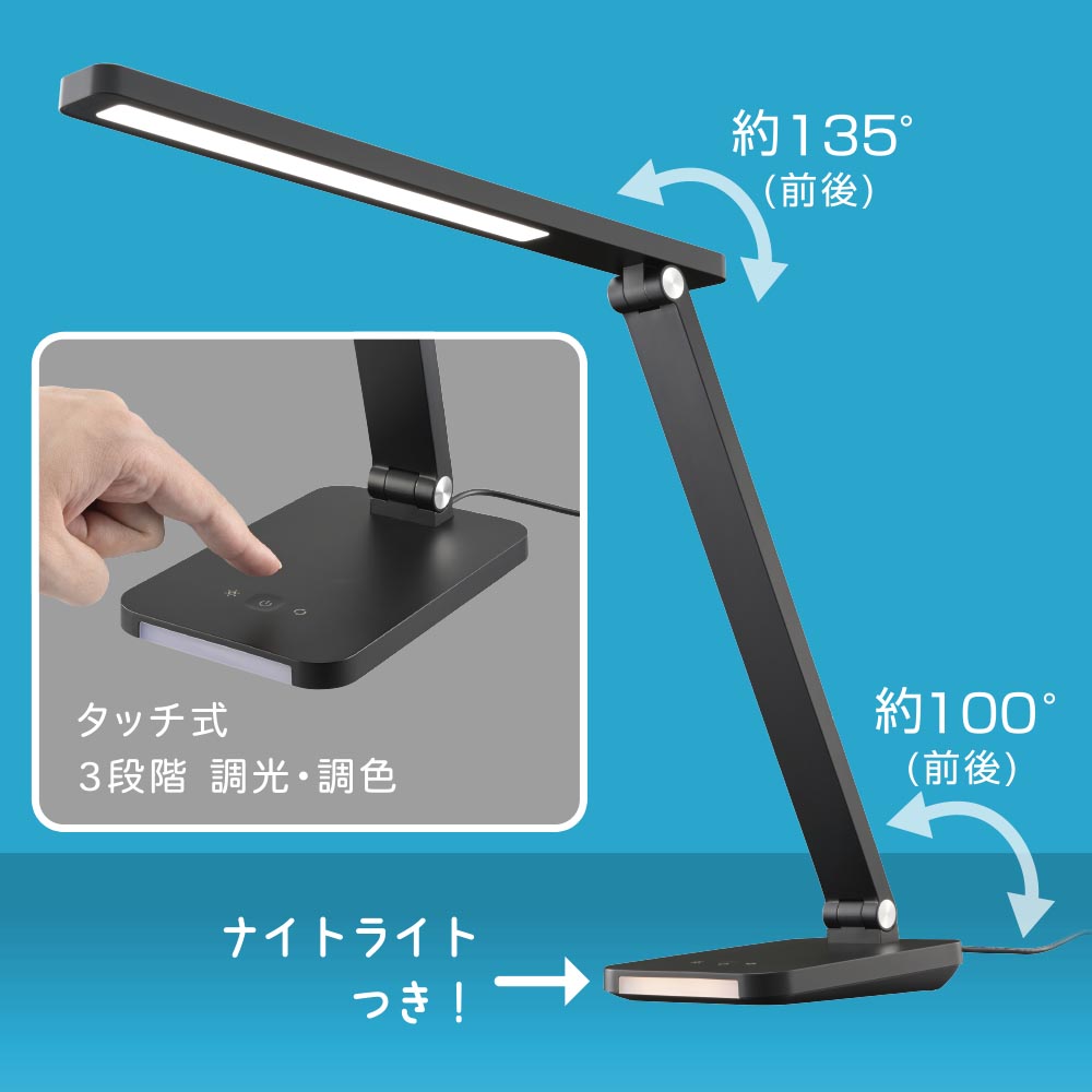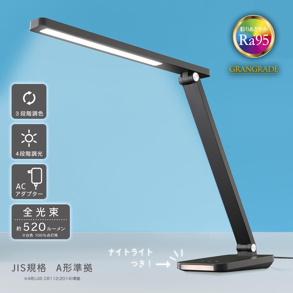 LEDデスクライト 4段階調光 3段階調色 520lm ブラック [品番]06-1945