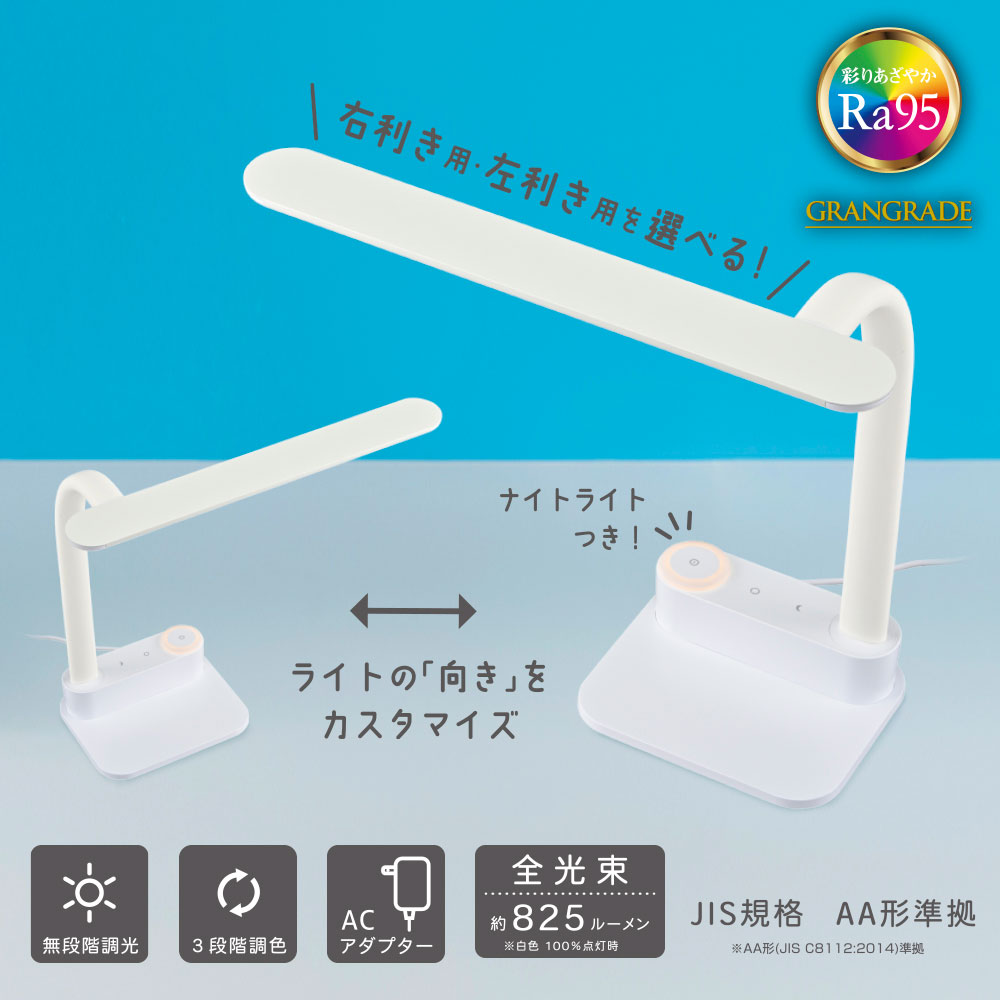 LEDデスクライト 無段階調光 3段階調色 825lm ホワイト [品番]06-1949