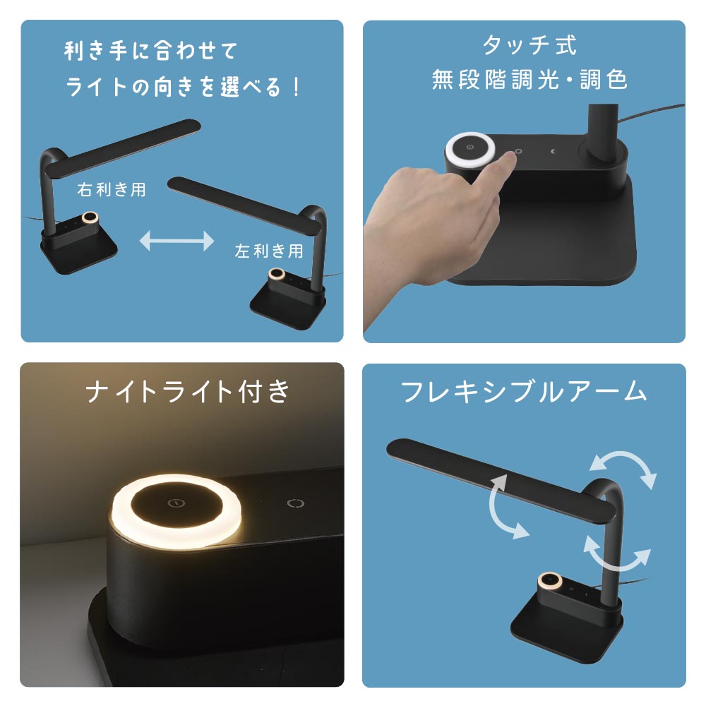 LEDデスクライト 無段階調光 3段階調色 825lm ブラック [品番]06-1950