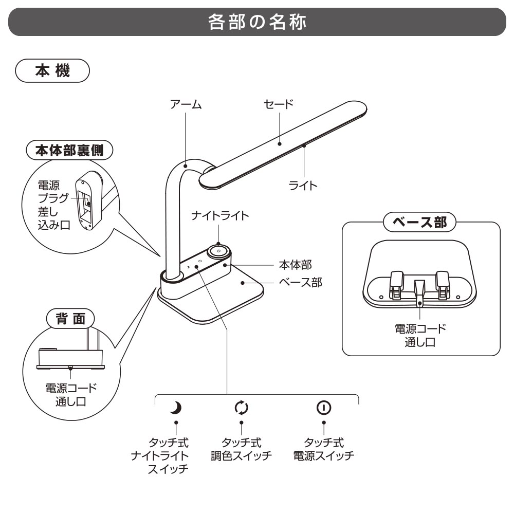 - ● ナイトライト付き