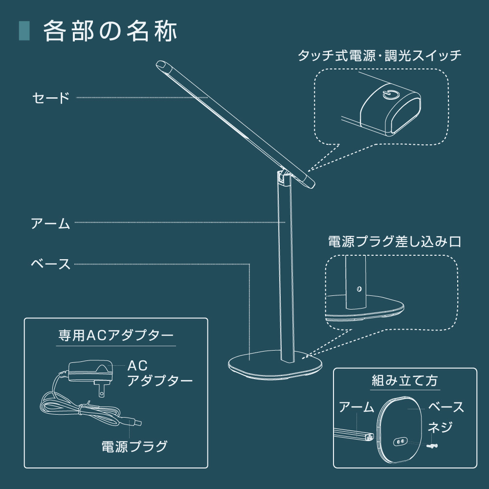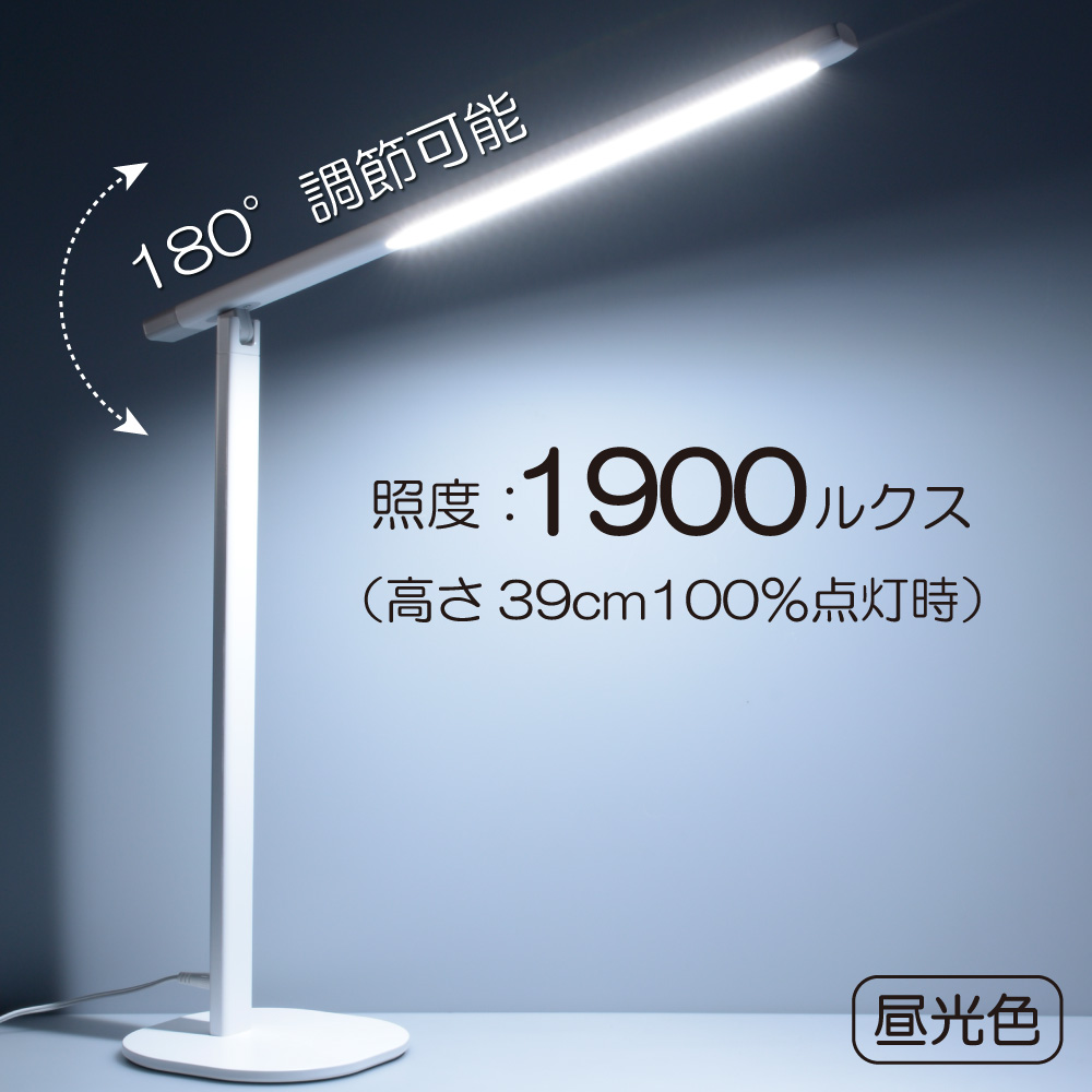 LEDデスクライト 4段階調光 750ルーメン ホワイト [品番]06-3865