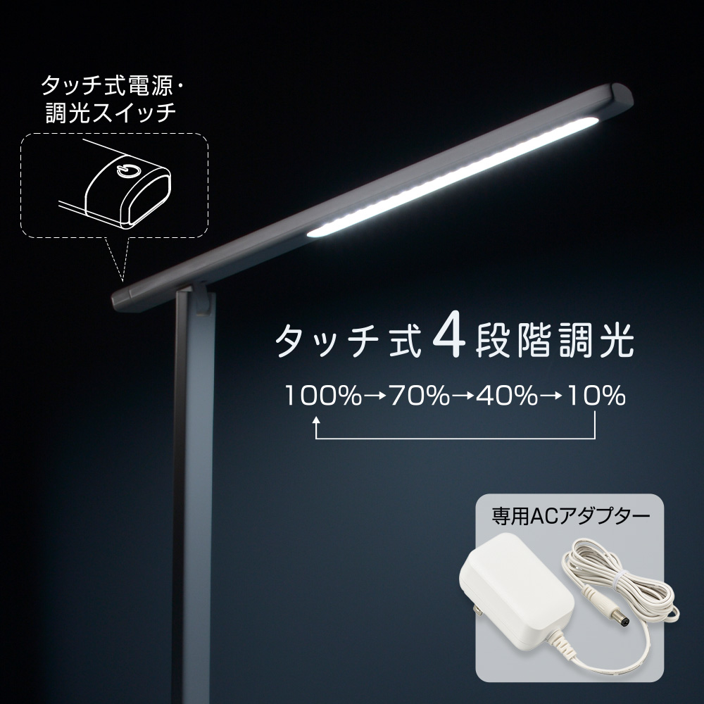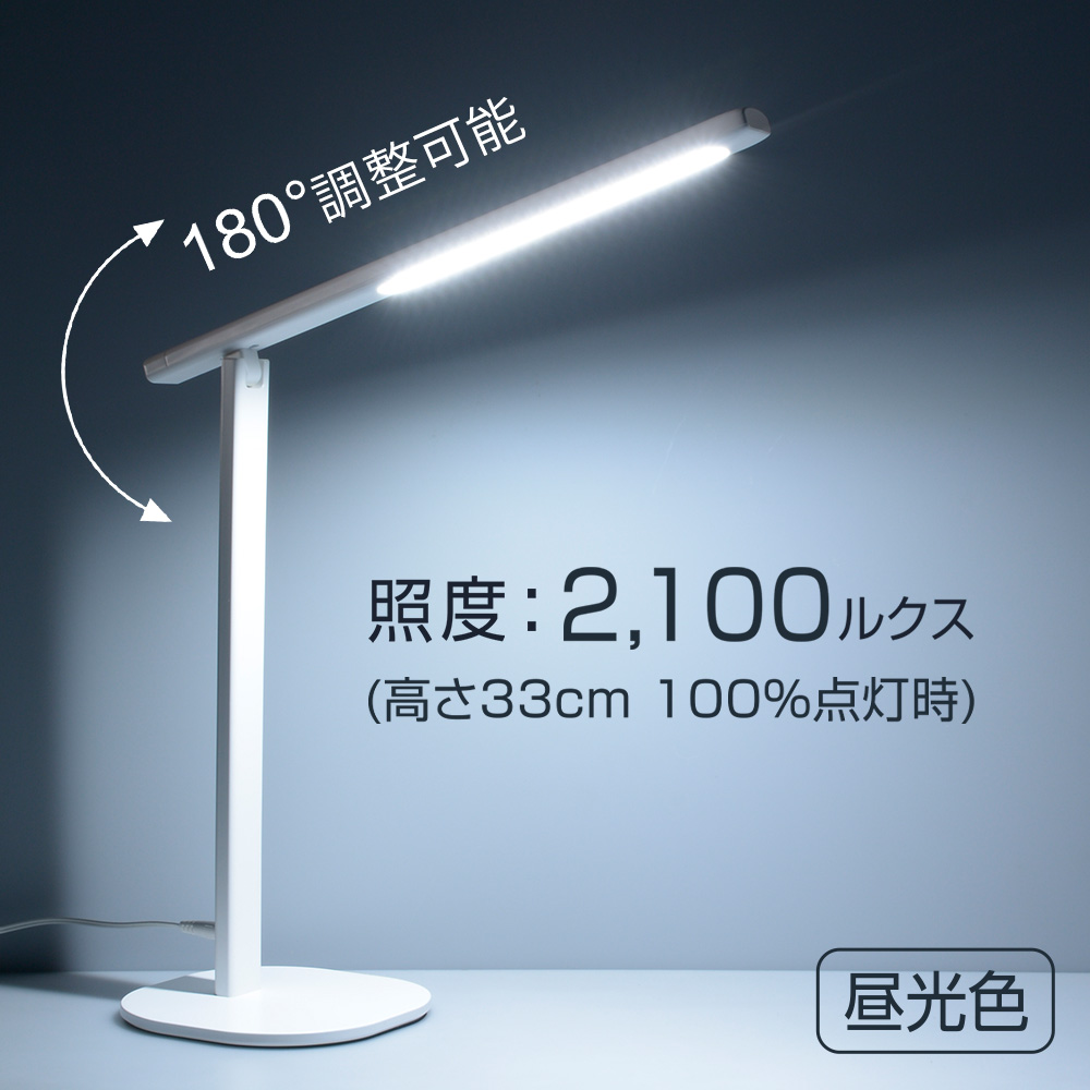 LEDデスクライト 4段階調光 550ルーメン ホワイト [品番]06-3864