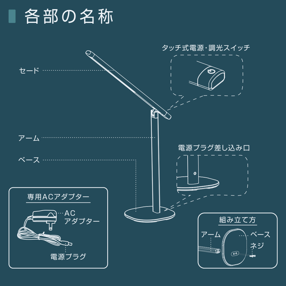 - ● タッチ式4段階調光