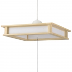 - ● 乳白色セードに木目調の枠組みを施した和風デザイン