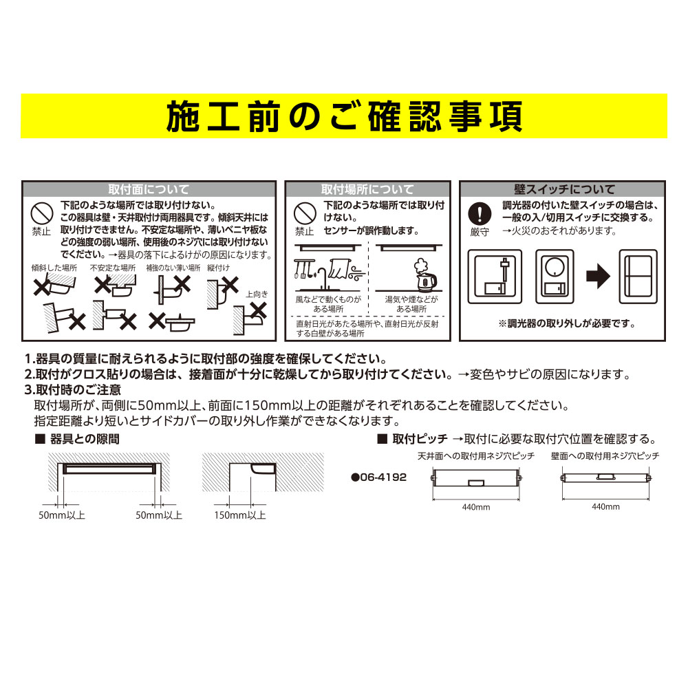 ※ この器具は壁・天井取付け両用器具です。傾斜天井には取り付けできません。