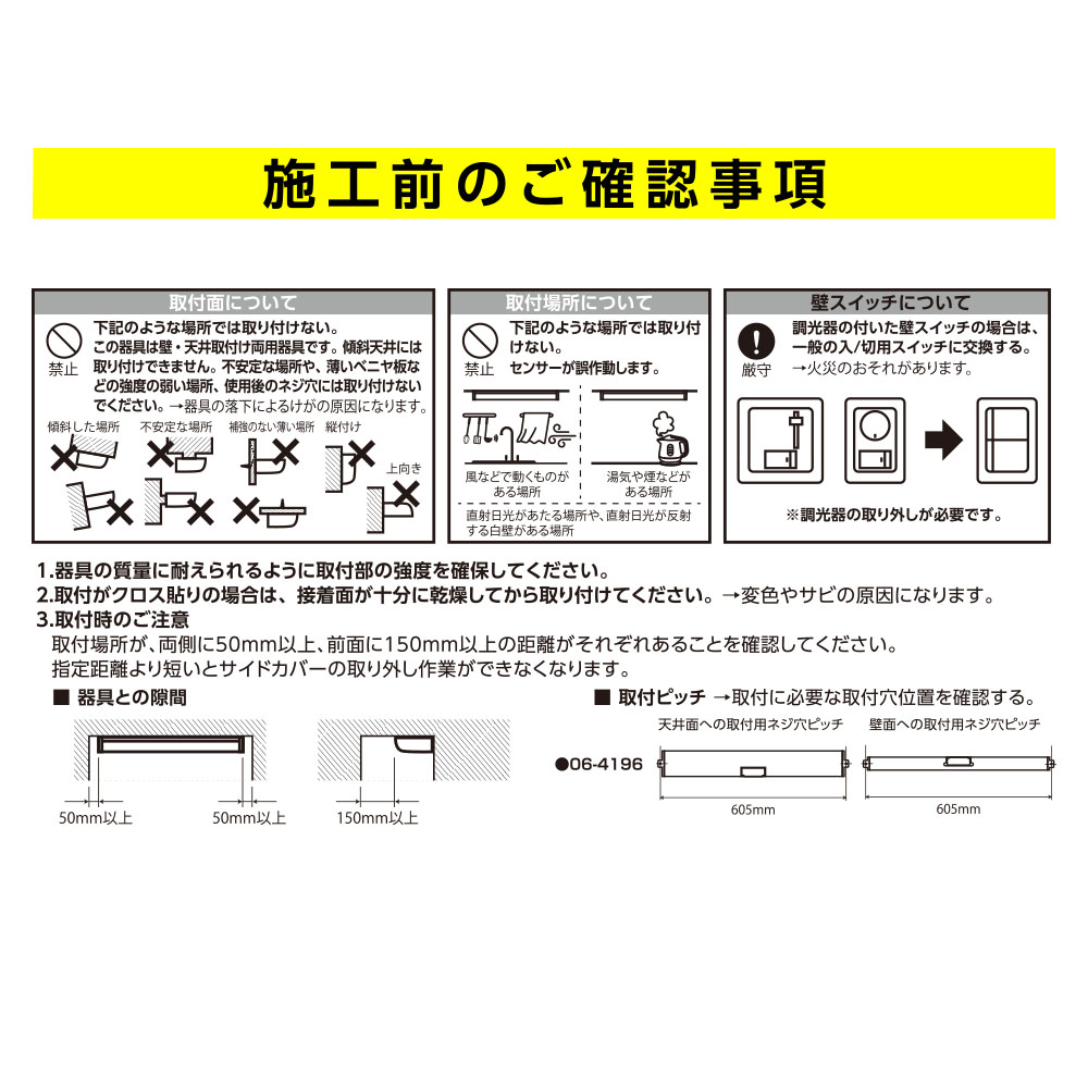 ※ この器具は壁・天井取付け両用器具です。傾斜天井には取り付けできません。