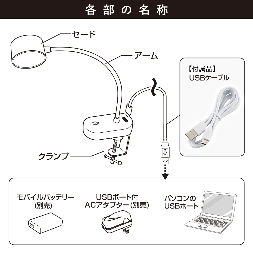 ■ 本体寸法:セード…(約)幅65×高さ45×奥行65mm、アーム…約320mm、クランプ…(約)幅55×高さ117×奥行110mm