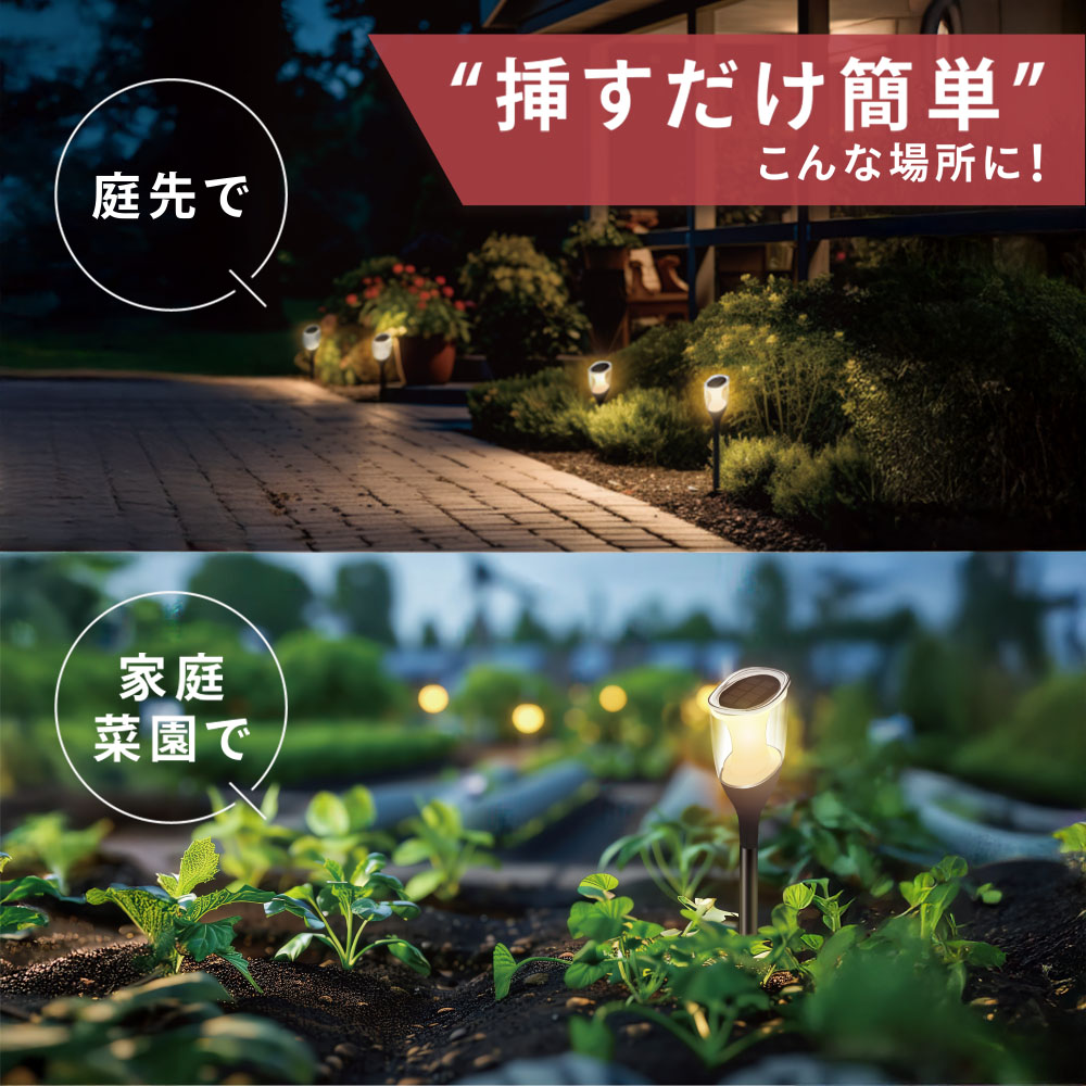 - ● 庭先や家庭菜園に、挿すだけの簡単設置