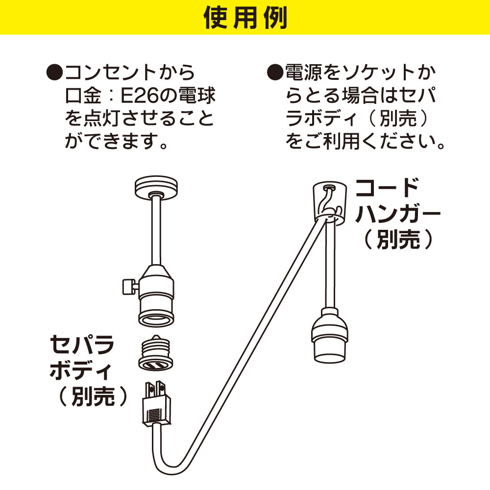 - ● コンセントから口金E26の電球を点灯させることができます。