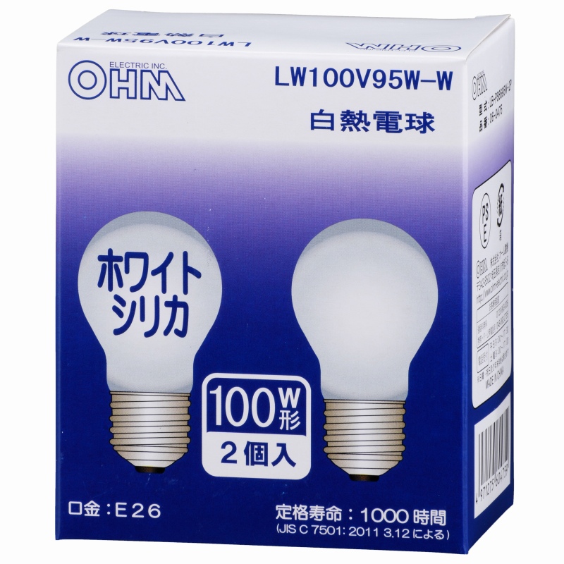 白熱電球 E26 100W ホワイト 2個入 [品番]06-0475