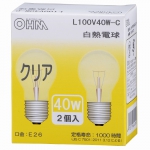 白熱電球 E26 40W クリア 2個入 [品番]06-0470