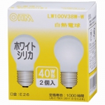 白熱電球 E26 40W ホワイト 2個入 [品番]06-0473