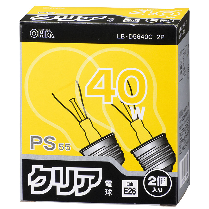 ● 40W クリアタイプの白熱電球 2個入り