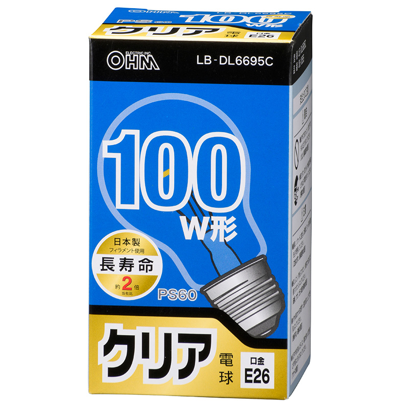 ■ 形式:L100V95W ■ ガラス球:PS60 ■ 消費電力:95W ■ 定格時間:2000時間(JIS C 7501による)