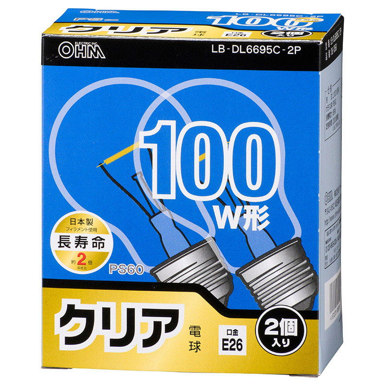 ■ 形式:L100V95W ■ ガラス球:PS60 ■ 消費電力:95W ■ 定格時間:2000時間(JIS C 7501による)