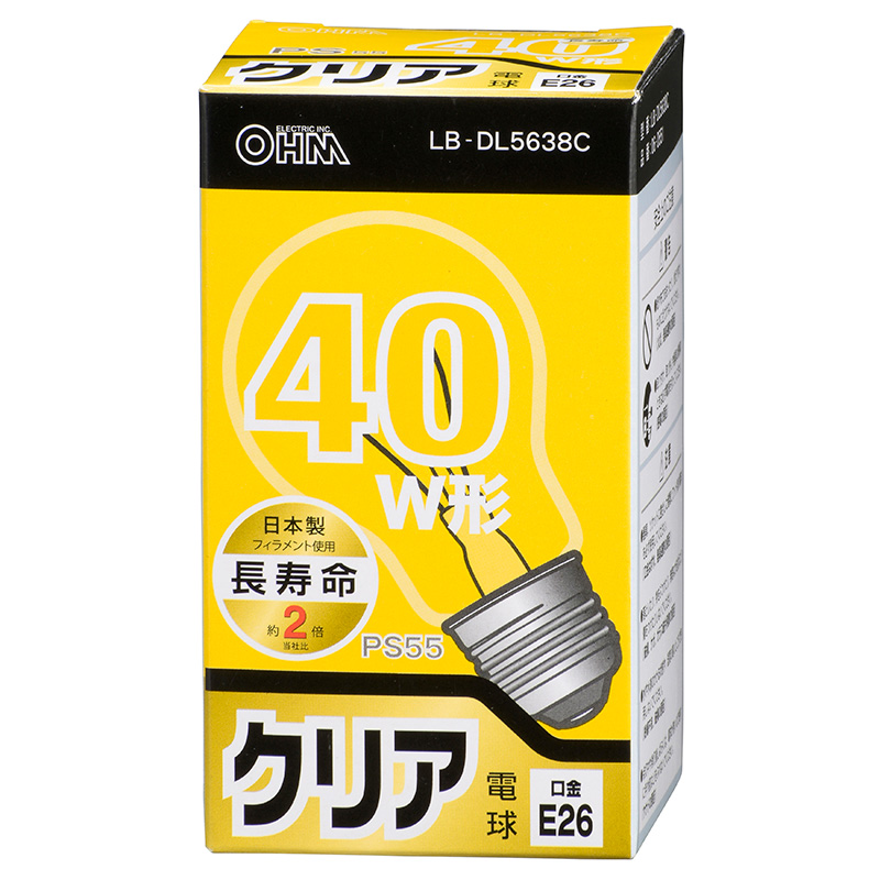 ■ 形式:L100V38W ■ ガラス球:PS55 ■ 消費電力:38W ■ 定格時間:2000時間(JIS C 7501による)