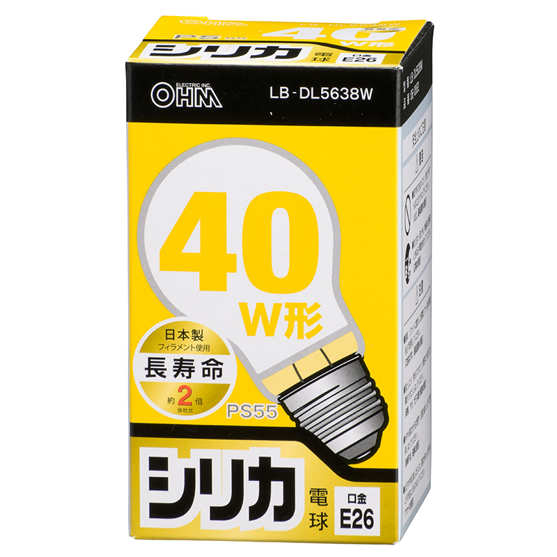 ■ 形式:LW100V38W ■ ガラス球:PS55 ■ 消費電力:38W ■ 定格時間:2000時間(JIS C 7501による)