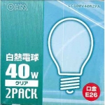 白熱電球 E26 40W クリア 2個入 [品番]06-2580