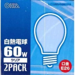 白熱電球 E26 60W クリア 2個入 [品番]06-2581