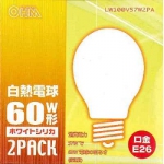 白熱電球 E26 ホワイト 60W形 2個入 [品番]06-2584