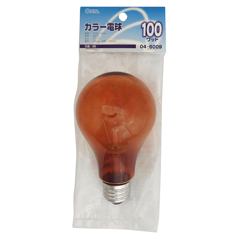 - 白熱カラー電球 E26 100W アンバー [品番]04-6009
