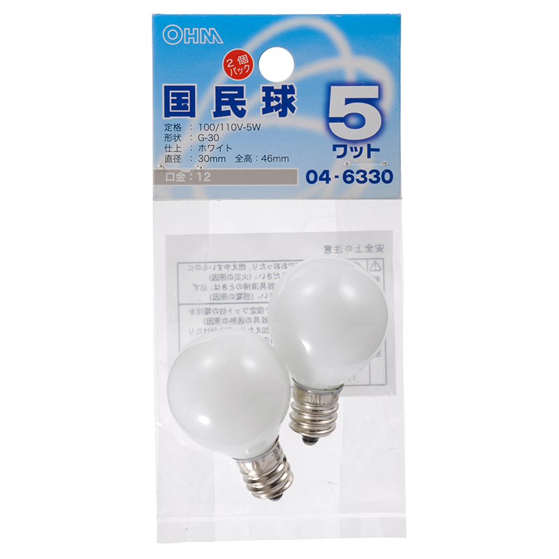 - 国民球 E12/5W ホワイト 2個パック [品番]04-6330