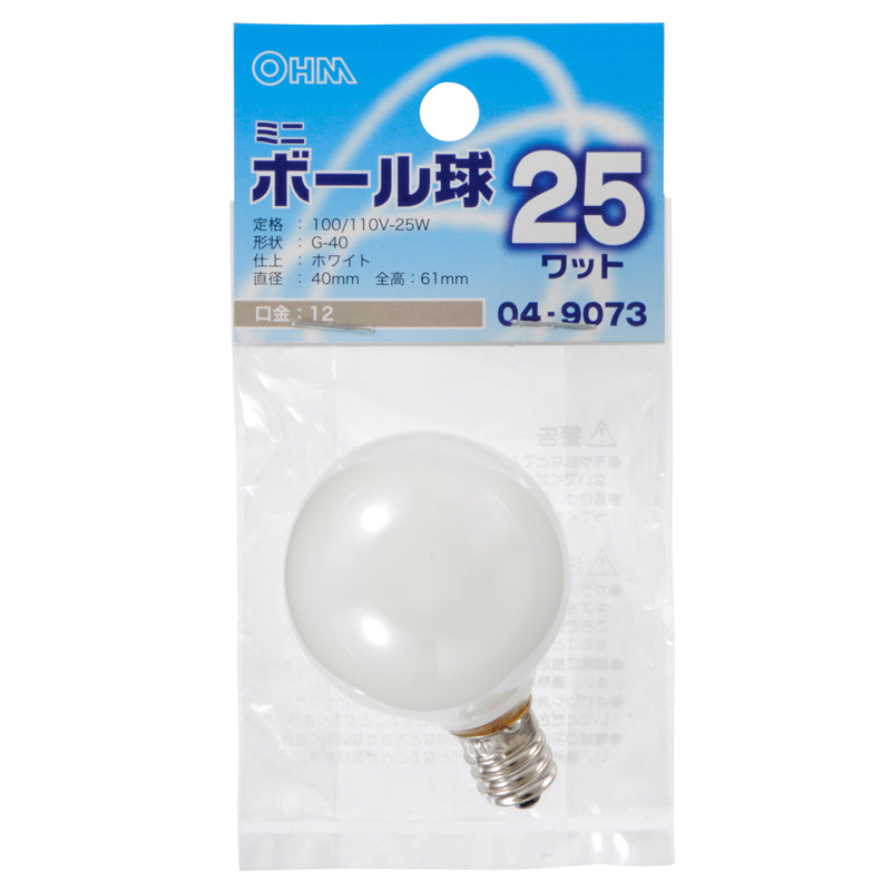 - ミニボール球 G-40 E12/25W ホワイト [品番]04-9073
