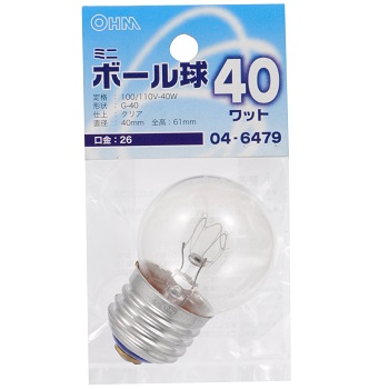- ミニボール球 G40 E26/40W クリア [品番]04-6479