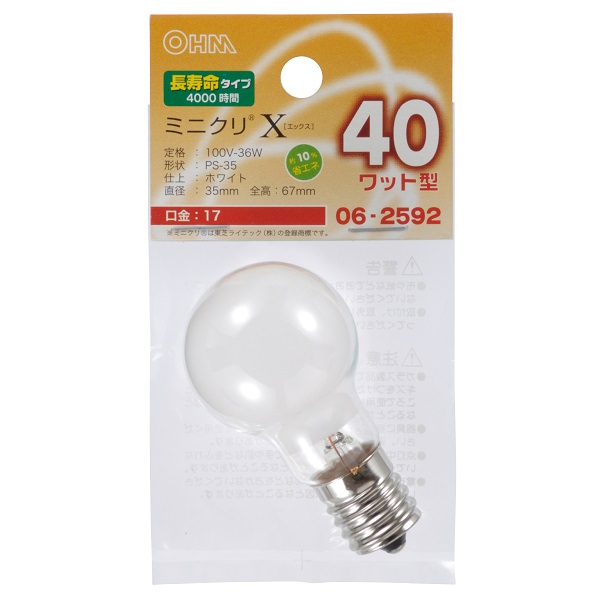 ミニクリプトン球 40形相当 PS-35 E17 ホワイト [品番]06-2592
