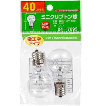 ミニクリプトン球 40形相当 PS-35 E17 クリア 2個入 [品番]04-7095