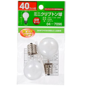 ミニクリプトン球 40形相当 PS-35 E17 ホワイト 2個入 [品番]04-7096