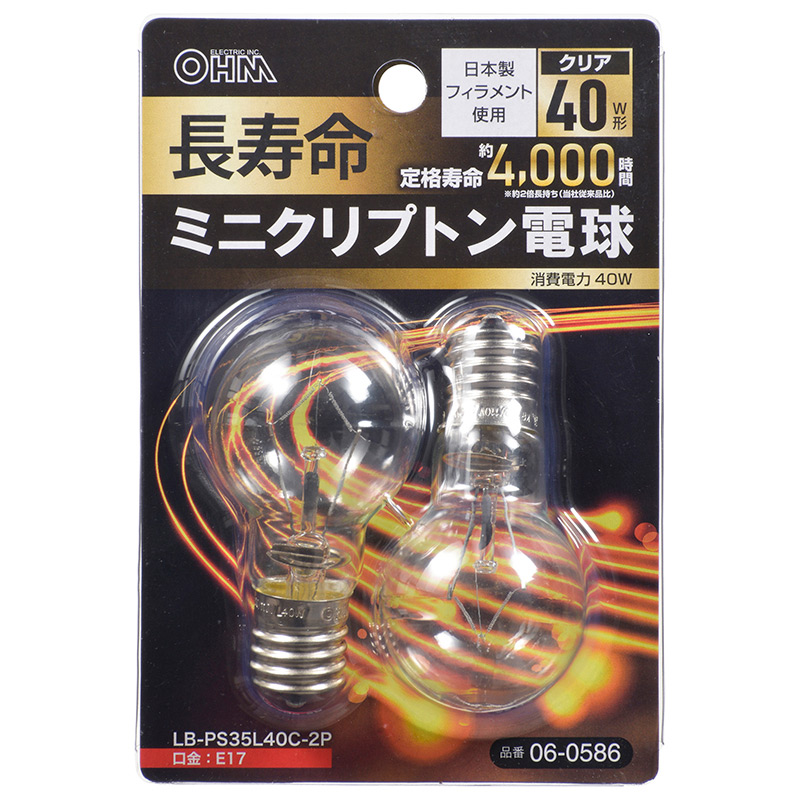 長寿命ミニクリプトン電球 E17 40W形 クリア 2個入 [品番]06-0586
