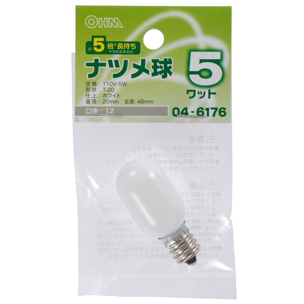 ■ 定格:110V−5W ■ 形状:T−20 ■ 口金:E12 ■ 仕上:ホワイト ■ サイズ:直径20×全高48mm