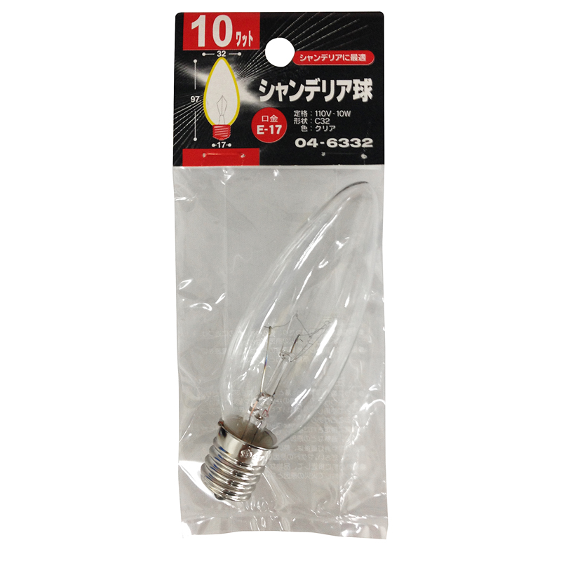 シャンデリア球 10W E17 クリア [品番]04-6332