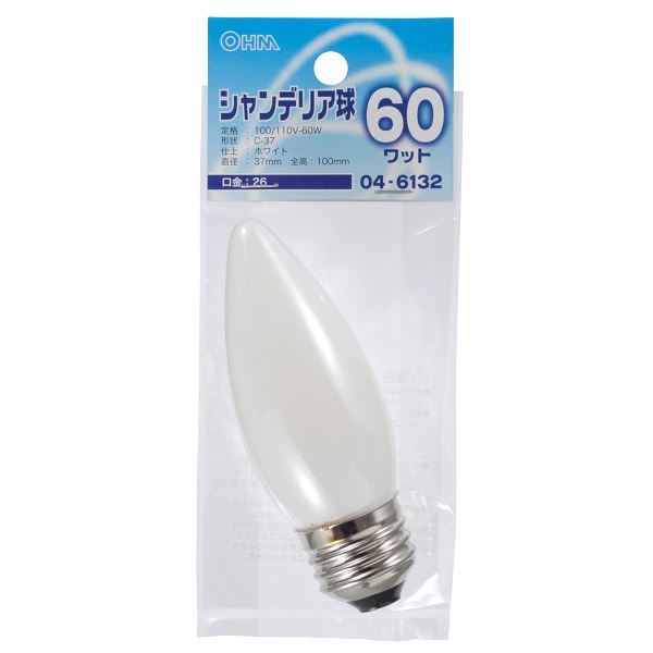 シャンデリア球 60W E26 ホワイト [品番]04-6132