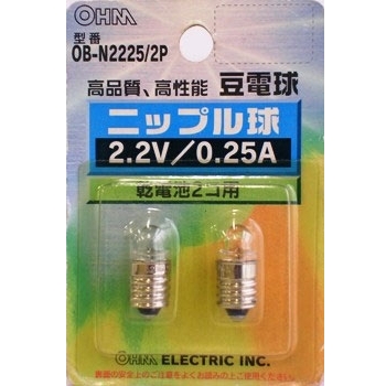 ■ ニップル球 2.2V/0.25A ■ 集光ガラスのため、レンズ効果によるスポット照明が得られます。 ■ 乾電池2個用。ペンライト、キーライトなど。 ■ 2個入り