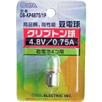 ■ クリプトン球 4.8V/0.75A ■ クリプトンガス封入で発光効率に優れ、一般球よりも明るい。 ■ 乾電池4個用。強力ライト、懐中ライトなど。 ■ 1個入り