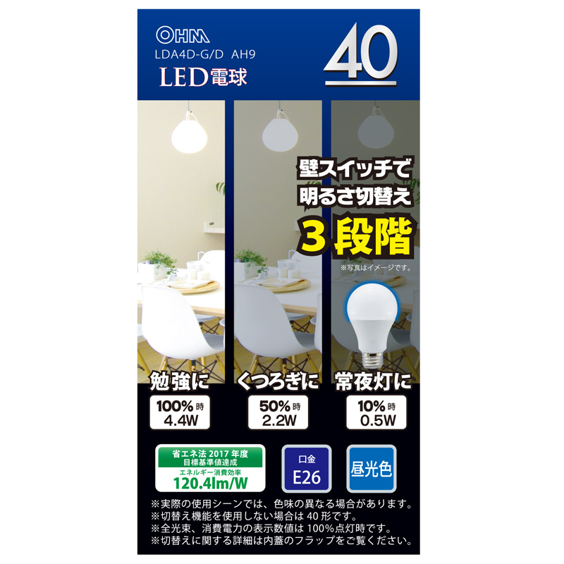 LED電球 E26 40形相当 明るさ切替 昼光色 [品番]06-0105