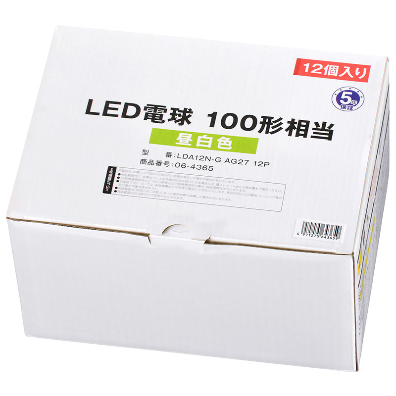 LED電球 E26 100形相当 昼白色 12個入り [品番]06-4365