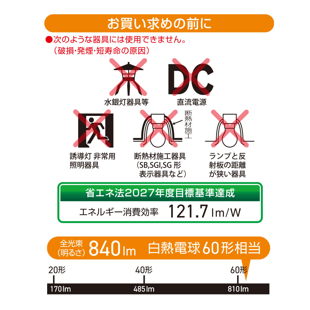 ■ エネルギー消費効率:121.7 lm/W
