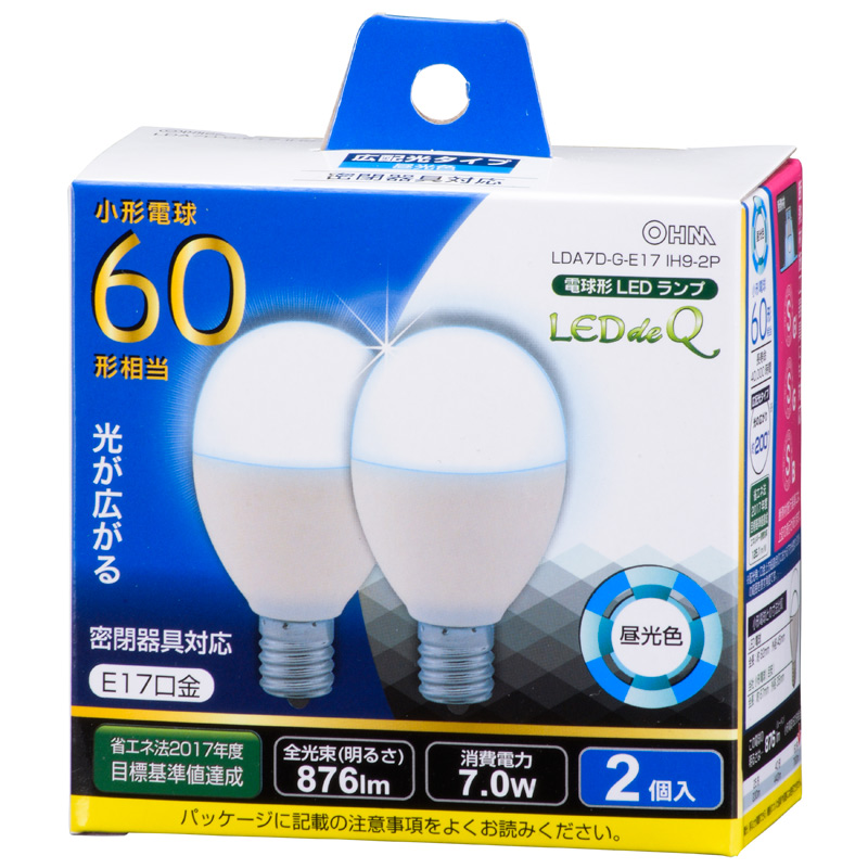 - LED電球 小形 E17 60形相当 昼光色 2個入 [品番]06-0782