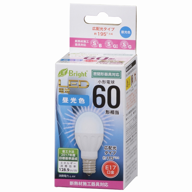 - LED電球 小形 E17 60形相当 昼光色 [品番]06-0718
