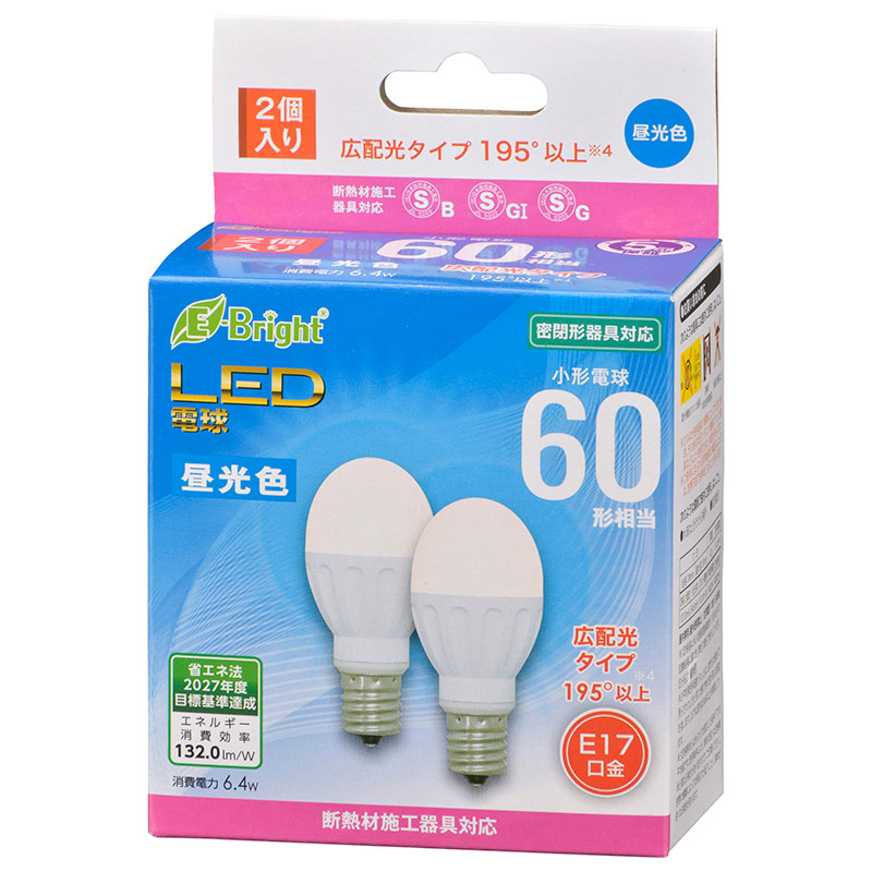 - LED電球 小形 E17 60形相当 昼光色 2個入 [品番]06-4324