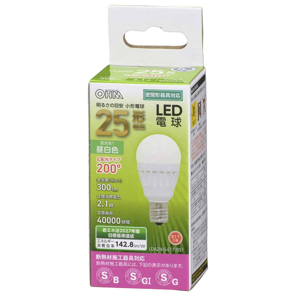 - LED電球 小形 E17 25形相当 昼白色 [品番]06-4472