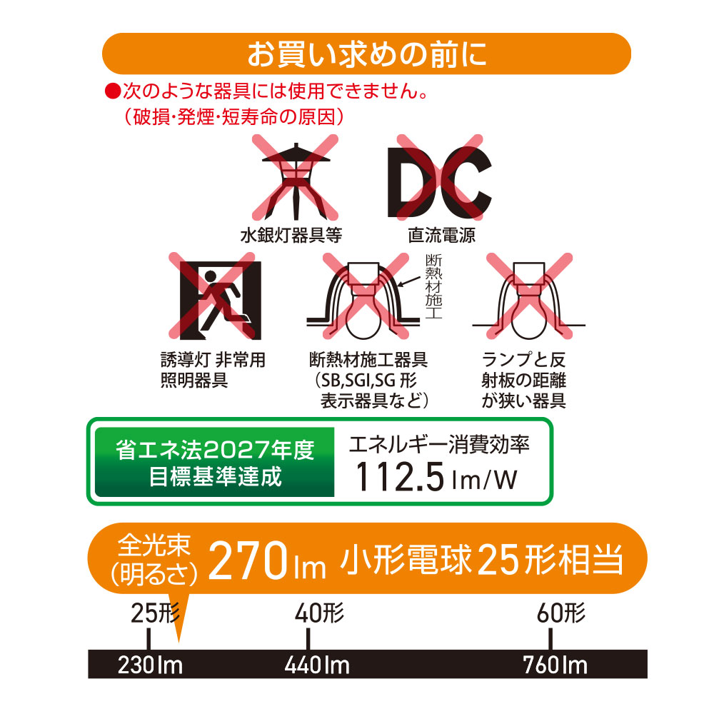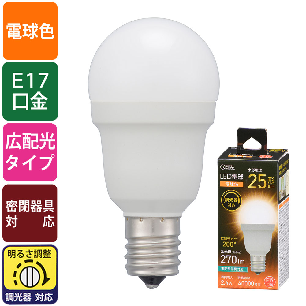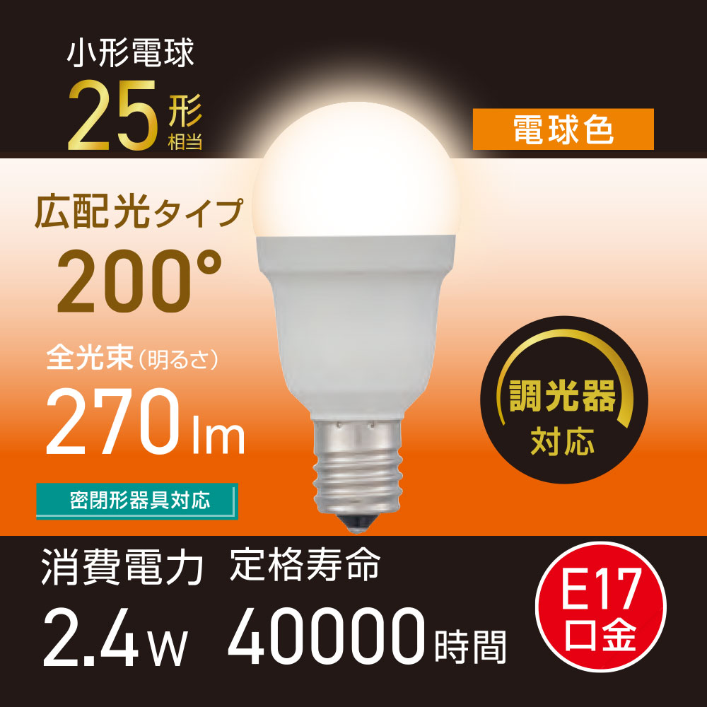 LED電球小形 E17 25形相当 調光器対応 電球色 [品番]06-5488